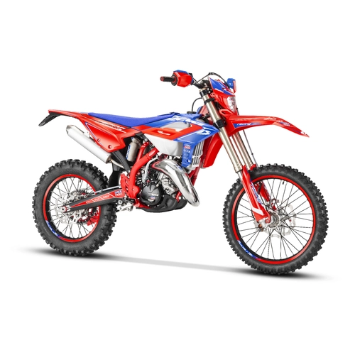 - Reinforced handguards: The new handguards, designed and manufactured in-house by Betamotor, feature a two-component material mould, in red and blue, which not only give the bike a racing look but also make them especially hard-wearing in even the toughest off-road use.
