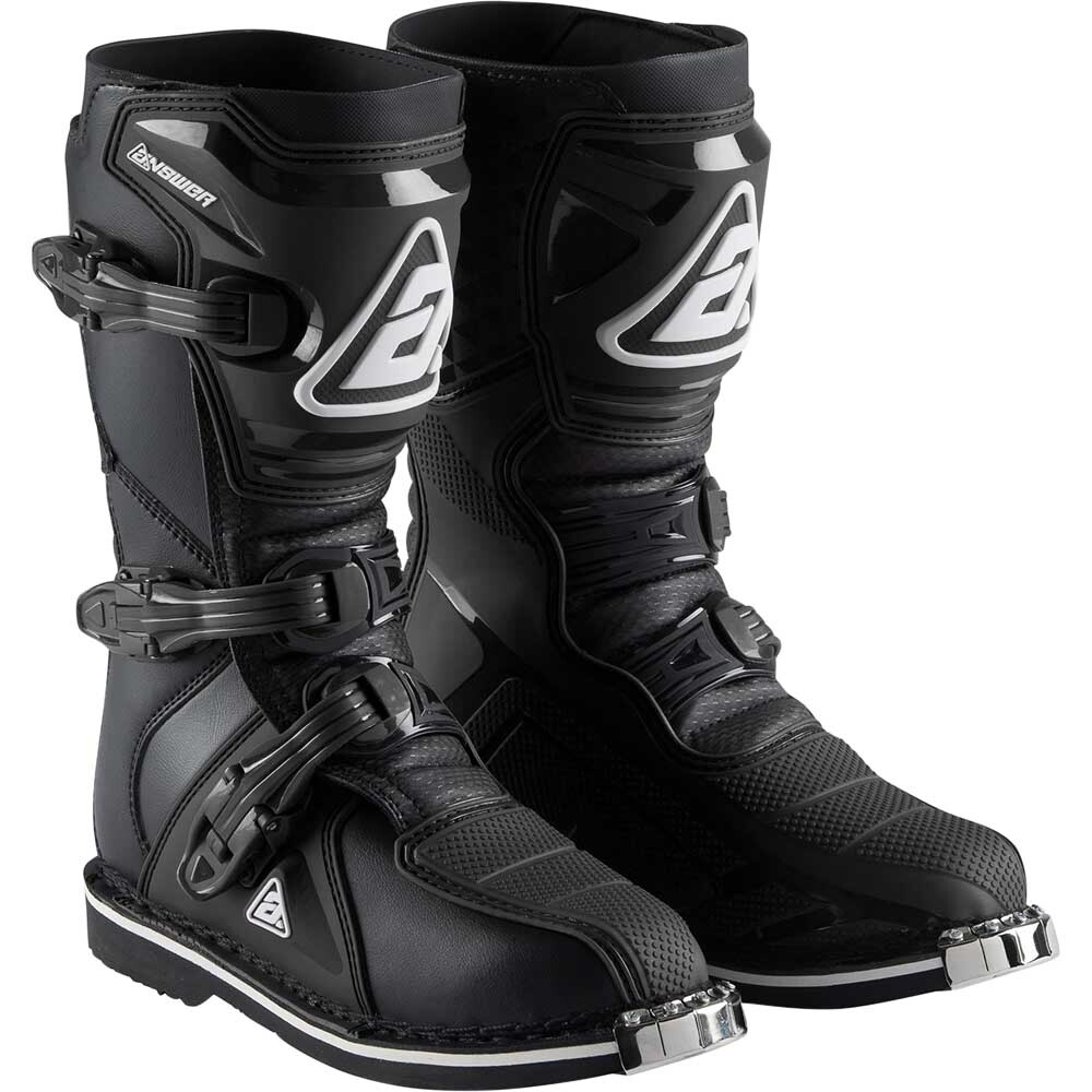 The Answer AR1 boot represents a new idea in motocross boots. Inexpensive boots have been around for a long time and no brand had ever really tried to make them good. The AR1 boot is better than good, it offers you far more than is offered by any other boot in its price range. Using just the right combination of synthetics, plastic and high-performance textiles we’ve created an upper that is light, durable and protective. We coupled that to a four-layer sole system that we stitched on for a foolproof and long lifespan that is easy to re-sole when the time comes